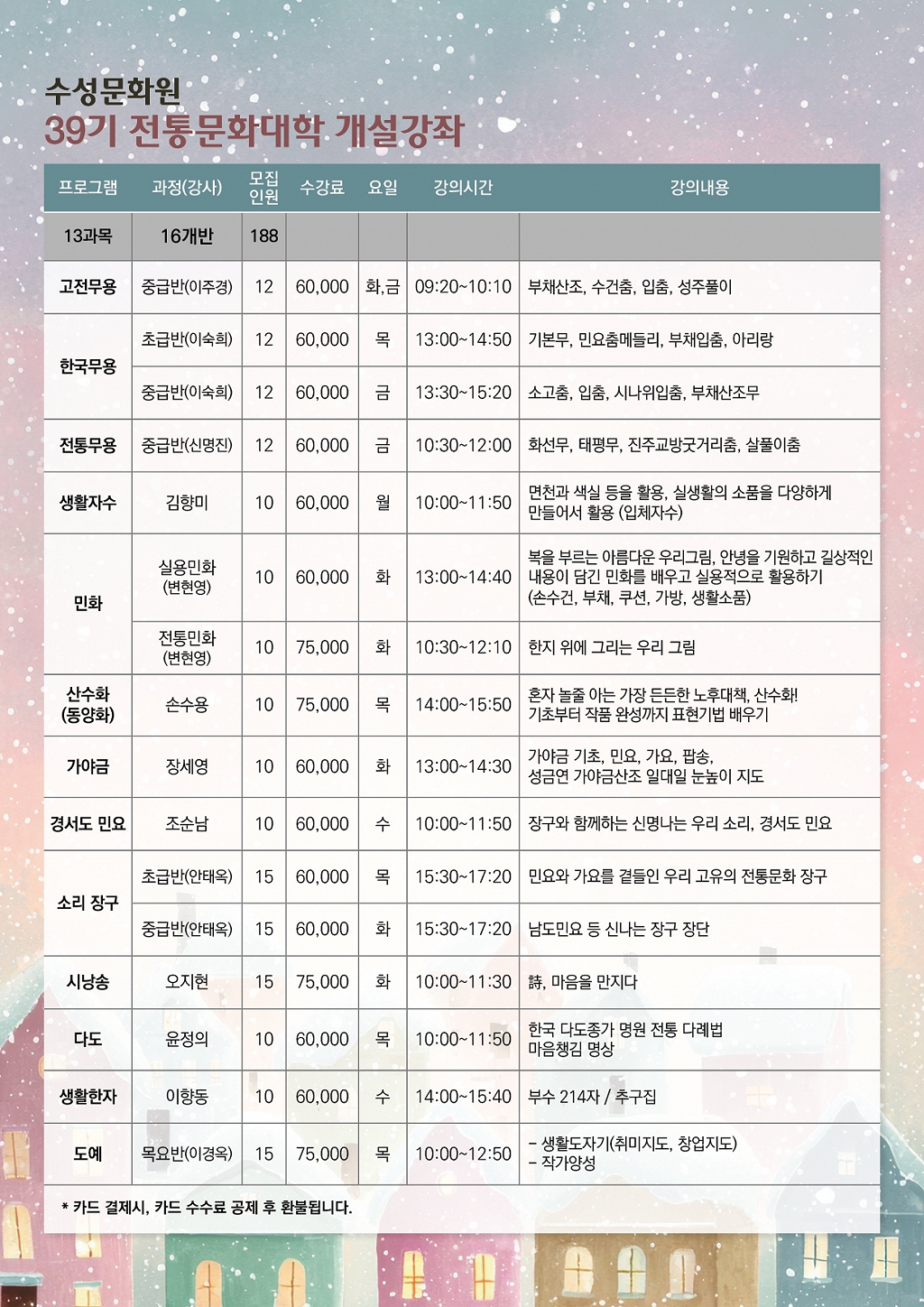 전통문화예술 분야에 관심있는 지역주민들의 많은 관심과 참여를 부탁드립니다.