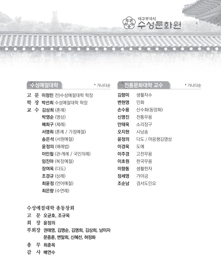 Copyright 2023 DAEGU SUSEONG CUTURAL CENTER All Rights Reserved. Design by Artkorea.